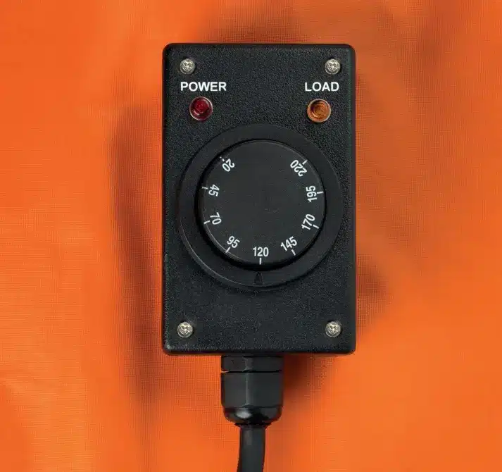 Può essere dotato di termostati con le seguenti range di temperatura: 0-90°C, 0-120°C oppure 20-220°C.
